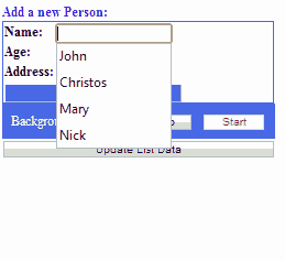Now press the Stop button to make the worker sleep while keep adding new Persons to the list. Press Update to see the result. Then press again the Start button and ensure the your worker was restarted.