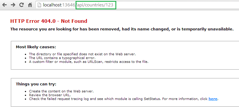Build and run your solution. Request either all available countries or a specific countries given an abbreviation. You should see the controller work just fine but of course you can pass whatever value you want for the abbreviation segment.