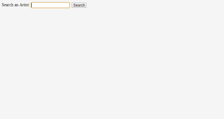 You will have noticed that the last cell has a button with it’s click event bound to a $root.showArtistAlbums expression. We added the $root word so that we can move up to the ViewModel’s root functions. Otherwise you could only see only functions existed in an Artist object (we don’t have any). This has to do with the current Knockout context you work with and since you used the “foreach: ArtistsSearched” data-bind, everything inside it represents an Artist object. At this moment you should at list be able to search for Artists.