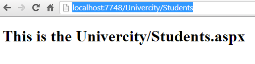 It’s a simple page with an h1 tag to display the page’s name. All the pages that we are going to create will display this information and only. Create a new folder named “Univercity” and add a new Web Form inside it, named “Students.aspx”. Add again an h1 element to display the path and the file name of the new page.
