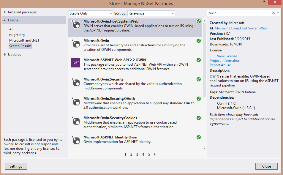 It’s time to setup an OWIN OAth2 Authorization Server in our application. Before starting adding the required components make sure you have the following Nuget Packages installed: