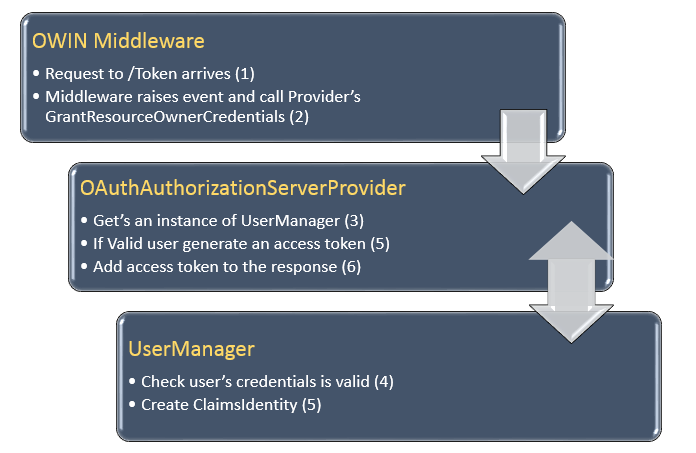 We want our application to use Bearer Token Authentication so we set a relative provider (not implemented yet). Anyone wants to create an access token will have to post it’s credentials on /Token URI. Let’s continue by adding two required methods into the AppStoreUserManager class.