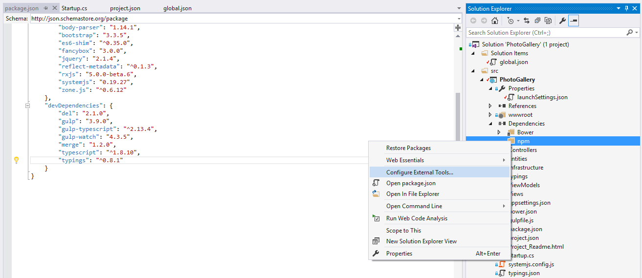 This post will describe the changes needed in order to upgrade the PhotoGallery SPA application we built together, from ASP.NET 5 RC.1 to ASP.NET Core. You do know the PhotoGallery app or not, it really doesn’t matter. In case you have your own ASP.NET 5 application and you are interesting to migrate it, then you are on the right place. The interesting part is that the PhotoGallery app had incorporated many important features such as Entity Framework Core 7 with migrations and MVC services so you will have the chance to see not only the changes required to get the upgrade right but also some problems I encountered during the process. Before starting let me inform you that I have moved the ASP.NET 5 version of the project to its own Github branch named RC_1 so it is always available as a reference. The master branch will always contain the latest version of the app. You can view the RC_1 branch here.