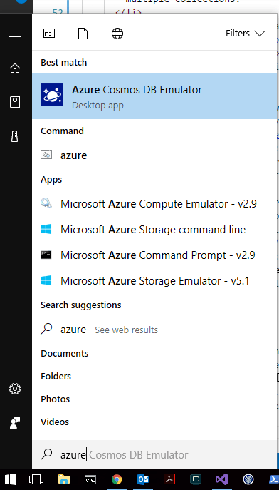 Apparently the project is built in ASP.NET Core. Build the solution but before firing it up, make sure the Azure Comsos DB Emulator is up and running. In case you don’t know how to do this, search in the apps for Azure Cosmos DB Emulator and open the app. It will ask you to grant admimistrator permissions in order to start.